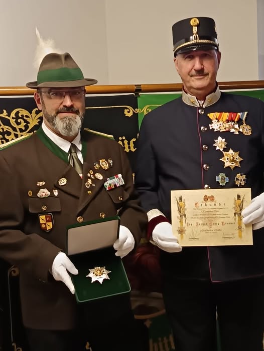 Auf Grund seiner besonderen Verbundenheit und Verdienste um das Infanterie Regiment Nr. 7 "Kronprinz Otto" ehrte unser Regimentskommandant Dietmar Aschaber Herrn Major i.Tr. Ing Jochen Georg Brunner mit dem silbernen Großstern des Regiments